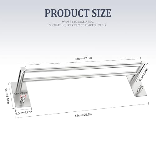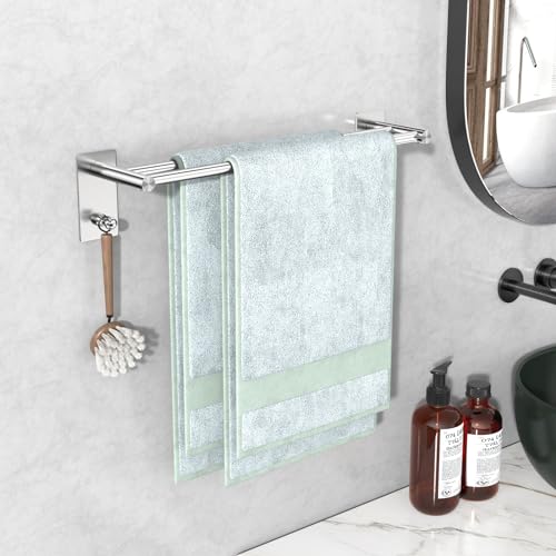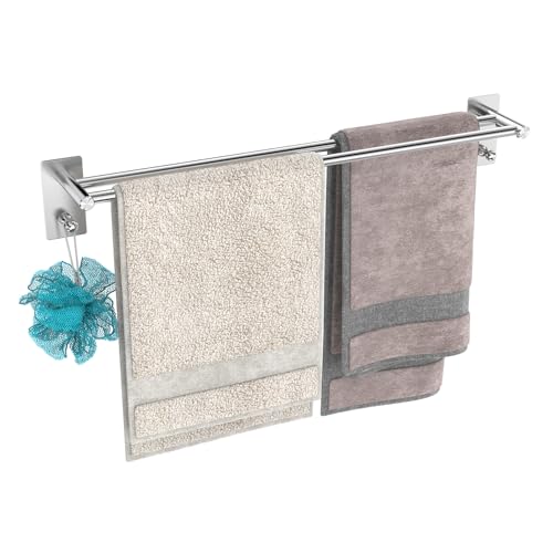 Hwyxcx - Towel Rail, No Drilling, Bathroom Towel Rail, 304 Brushed Stainless Steel, Self-Adhesive Bath Towel Rail, Double Towel Rail, Wall Mounting, for Bathroom, Kitchen (60 cm, Silver)