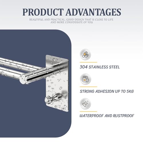 - Metal structure: the towel holder self-adhesive is made of high-quality SUS 304 stainless steel, hand-brushed stainless steel surface of the towel rail is resistant to daily scratches and discolouration. Suitable for damp places, such as bathroom, kitchen and shower.