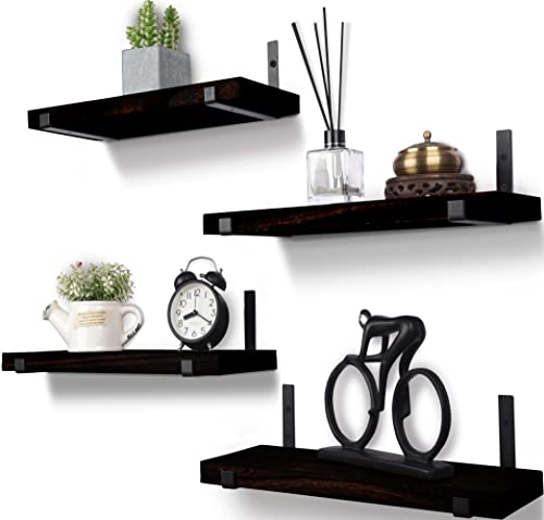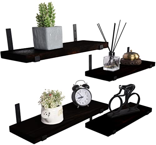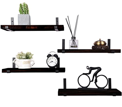 HXSWY - Rustic Wood Floating Shelves Wall Mounted Farmhouse Wooden Wall Shelf for Bathroom Kitchen Bedroom Living Room Set of 3 Dark Brown