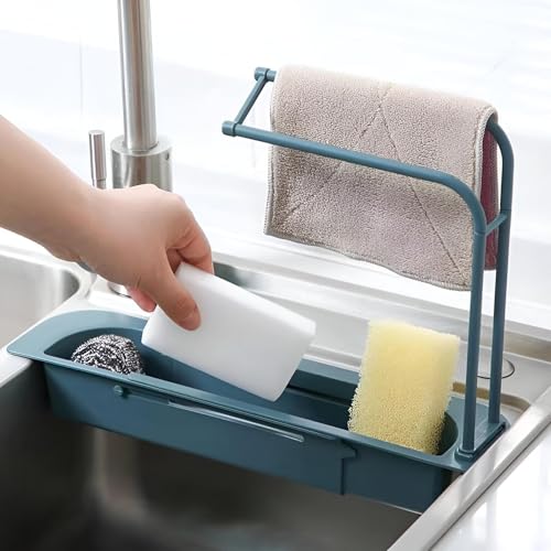 - This flexible and extendable sink shelf is designed to fit various sink sizes by easily adjusting its length, providing a customizable storage solution that maximizes space in your kitchen or bathroom.