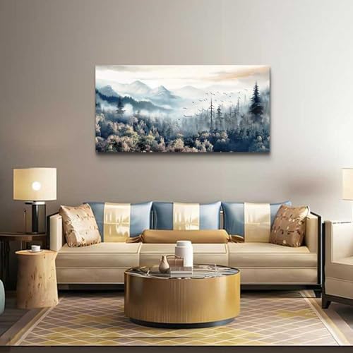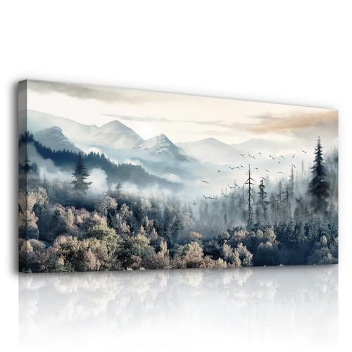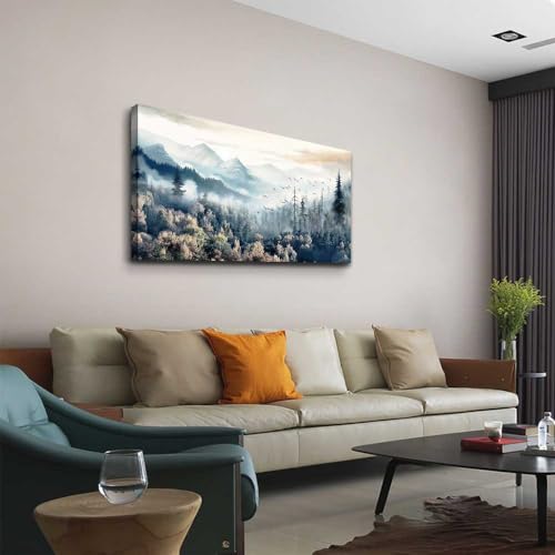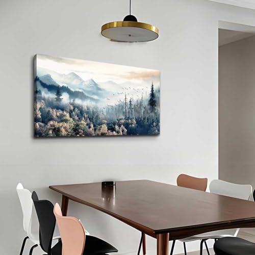 hyidecorart - hyidecorart Framed Wall Art For Living Room Canvas Wall Decor For Office Bedroom Decorations Fog forest landscape Pictures Artwork Poster Wall Painting Canvas Prints Home Decor Works 40 X 20in