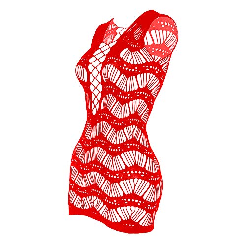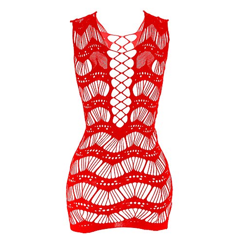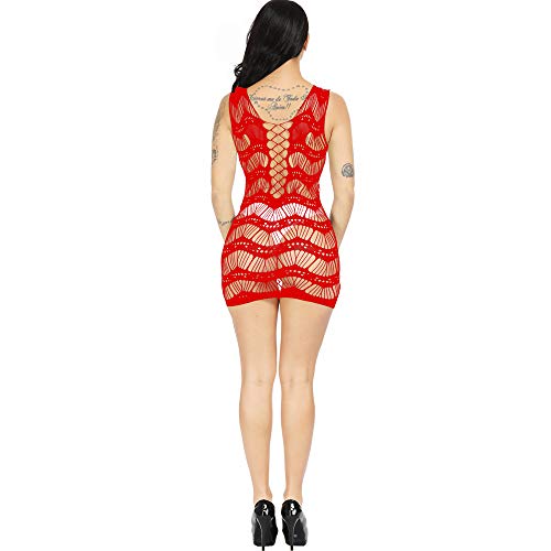 HYJC - Women Bodystocking Lingerie Fishnet Babydoll Nightwear (red), One Size