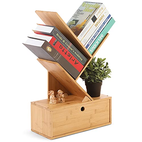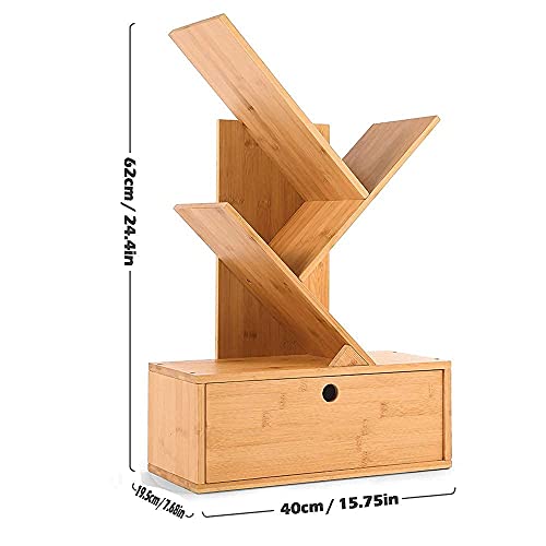 HYNAWIN - HYNAWIN Bamboo Tree Bookshelf with Drawers, Countertop Organizer, 3-Tier Desktop Display Bookcase in Living Room/Home/Office, Free Standing Storage Rack for Books/Magazines/CDs/Files/Photo Albums