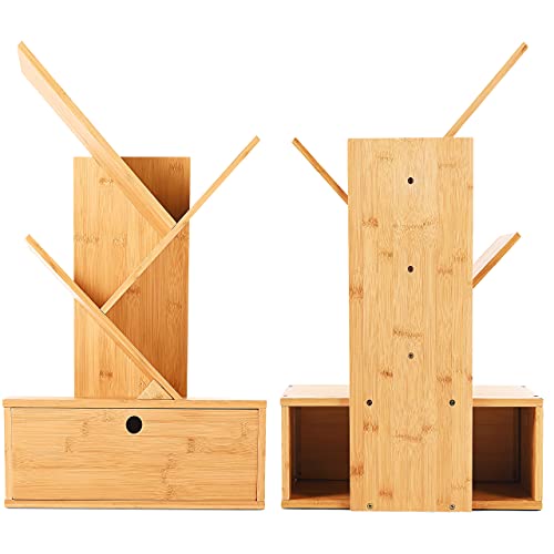 - [100% Natural Bamboo]: HYNAWIN tree bookshelf with a drawer is made of high-quality natural bamboo. Bamboo is an eco-friendly and renewable material that does not affect the environment. The premium material make high-quality product.