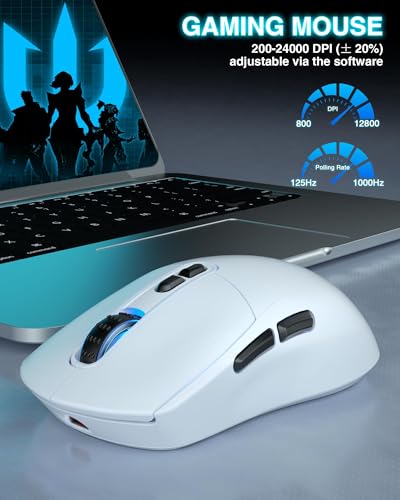 - نقطة لكل بوصة قابلة للتعديل وقابلة لإعادة الشحن: ماوس لاسلكي DPI يصل إلى 24000، 6 إعدادات افتراضية (1200/1600/2400/3200/6400/12800). تعديل DPI يدعم البرنامج يتراوح من 200 إلى 24000 (±20%) نقطة لكل انش. بطارية مدمجة 450 مللي أمبير في الساعة مع كيبل شحن USB-C، يدعم الشحن واستخدام في في نفس الوقت، مما يضمن قوة ثابتة أثناء اللعبة!