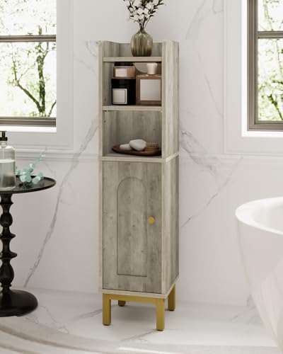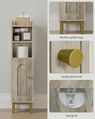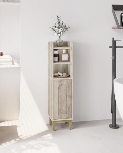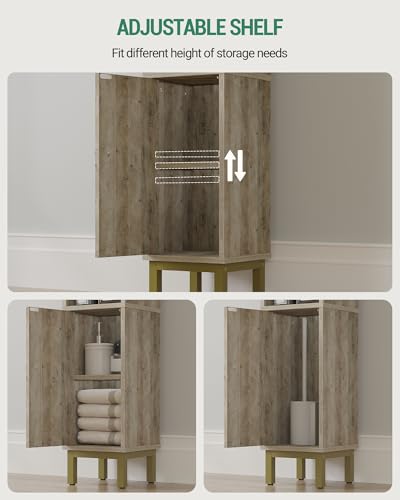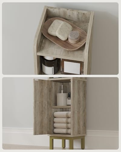 Hzuaneri - Hzuaneri Bathroom Storage Cabinet, Small Corner Floor Cabinet with Door and Shelves, Narrow Toilet Paper Cabinet, Bathroom Organizer with Adjustable Shelf, for Small Spaces, Rustic Greige BC08205X