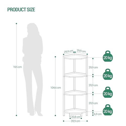 - Maximise your space: With 4 spacious shelves, our corner bookcase offers plenty of storage space with minimal space requirement - perfect for small apartments or houses. Use it to display books, plants or other decorative items and make the most of your unused corners.
