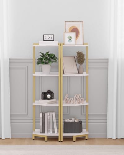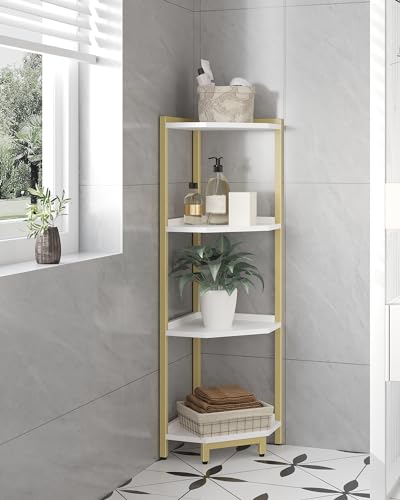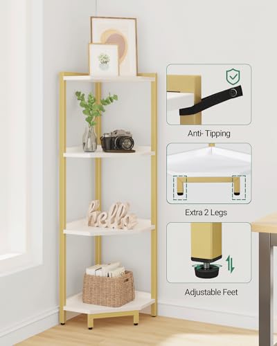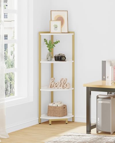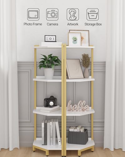 Hzuaneri - Hzuaneri CS05803A Corner Shelf, 4-Tier Bookcase, Standing Shelf, Storage Shelf, Corner Bookcase, Suitable for Living Room, Study and Office, 30 x 30 x 104.5 cm, White Gold
