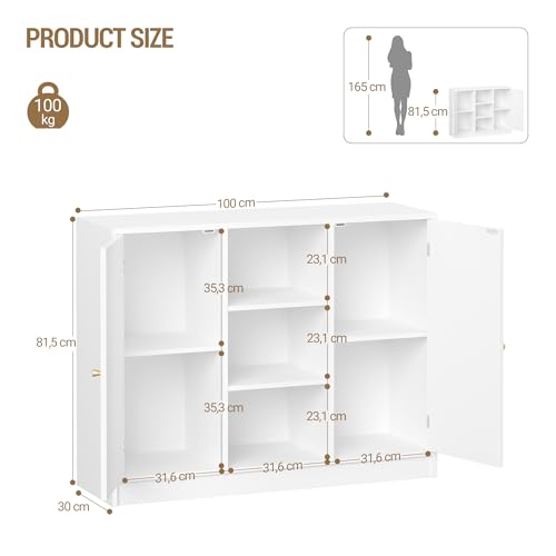 Hzuaneri - Hzuaneri SC21203X Bathroom Storage Cabinet Kitchen Cabinet with 2 Arched Doors and 3 Open Shelves Golden Handles Multifunctional Bathroom Kitchen 30 x 100 x 81.5 cm White
