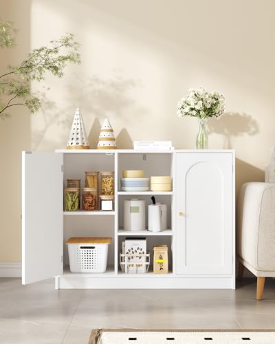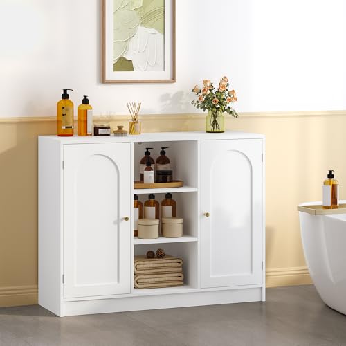 - [Aesthetically pleasing and practical] The minimalist white housing of the cabinet complements the design of the arched door. The gold handles and silent magnetic closures give the storage cabinet a light and luxurious texture. Whether in the bathroom, in the living room or in the hallway, the cabinet blends easily into your interior design