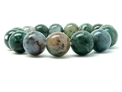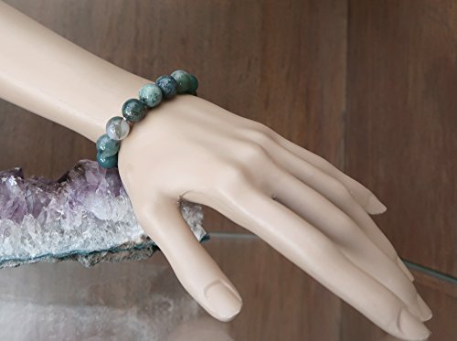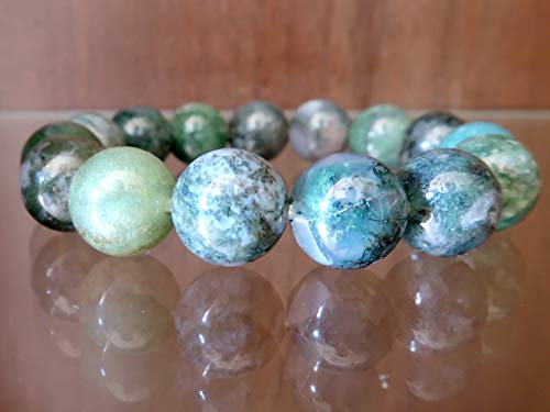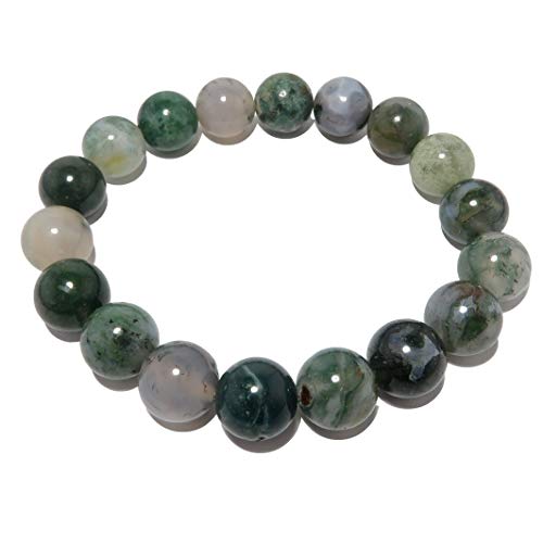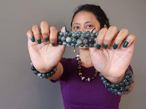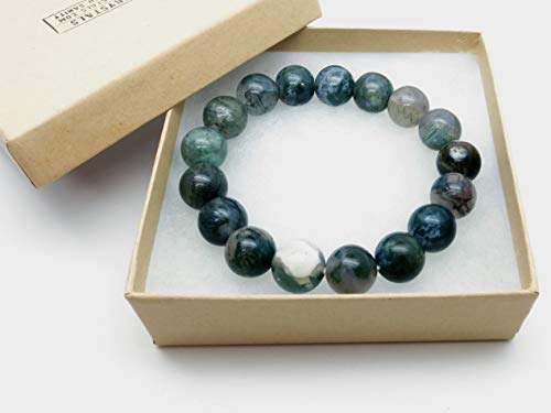 I Dig Crystals - Agate Moss Bracelet 11mm Boutique Fresh Green Clear Globe Bead Genuine Gemstone Healing Handmade B01, gemstone, agate,