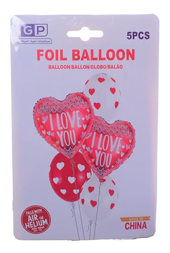 Generic - كيس بالونات فويل بعبارة I Love You مملوءة بالهواء أو رقائق الهيليوم من 5 قطع - أحمر وأبيض