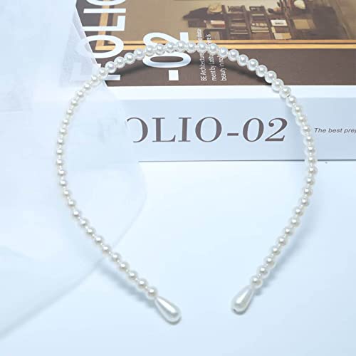 Iaceble - Boho Pearl Hairband Hoop Artificial Pearl Hair Hoop Wedding Faux Pearl Headband Bridal Pearl Headpiece Decorative Hair Accessories for Women and Girls Headdress(B)