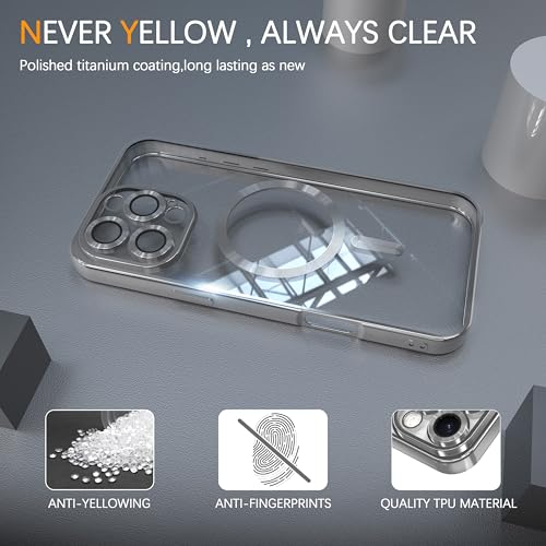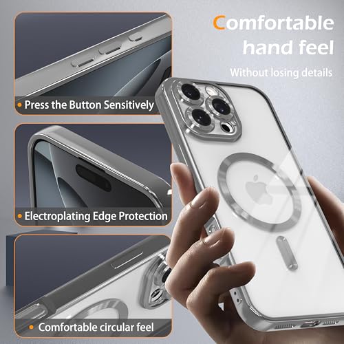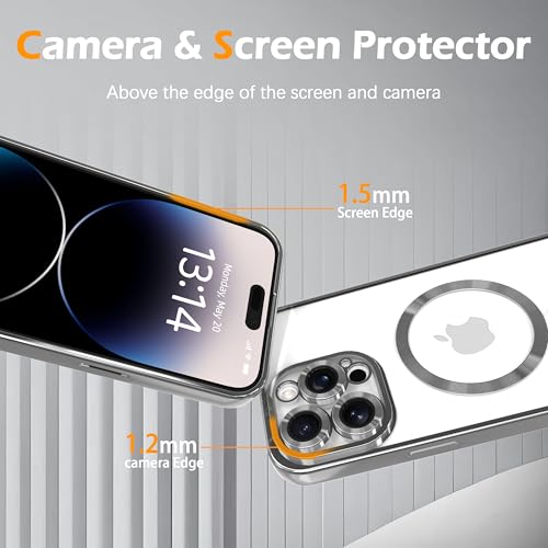 - 【Fashionable and Magnetic Design】 Features a stylish electroplated edge with a clear back, making your phone case stand out. The built-in strong magnetic ring ensures secure alignment for fast wireless/MagSafe charging. It works seamlessly with most MagSafe accessories. It's non-slip, scratch-resistant, anti-fingerprint, and easy to clean.