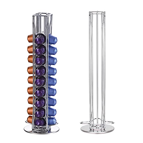 iayokocc - iayokocc Coffee Capsule Storage Holder, 360 Degree Rotation Dispensing Tower(Silver)