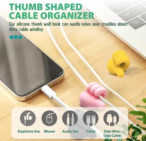 - MULTICOLOUR DESIGN: Set of 20 thumbs-up shaped cable holders in vibrant white, yellow, coral, and green colours for organizing various cables