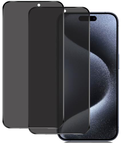 IBETEK - Screen Protector for iPhone 15 Pro, Dark Privacy Screen Tempered Glass, 9H Hardness - Pack of 2