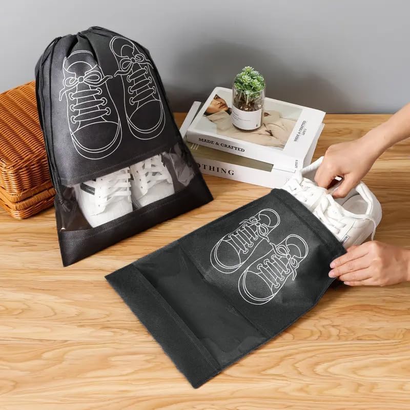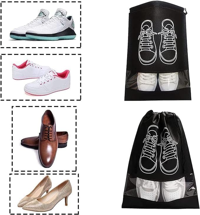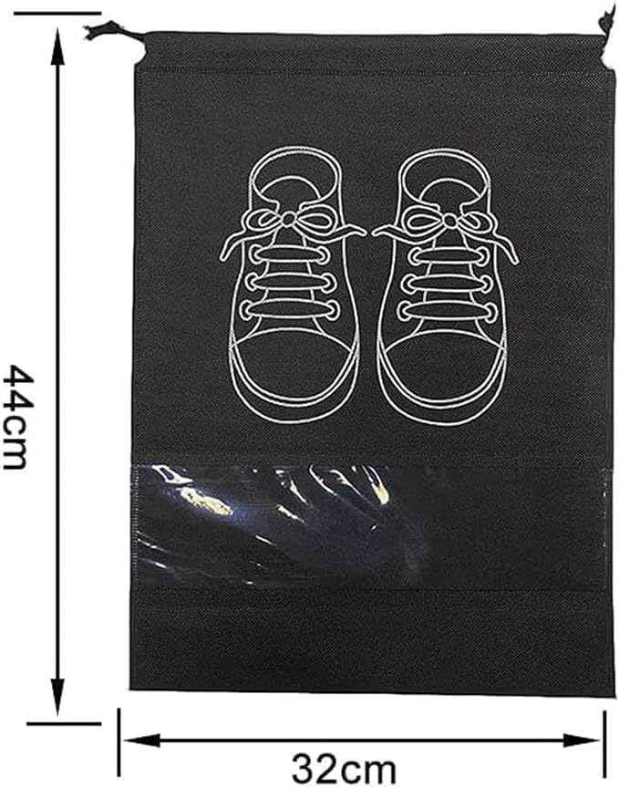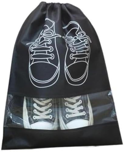 H-Home - شنطة تخزين أحذية كبيرة مقاومة للغبار والماء ومحولة وبرباط سحب ونافذة شفافة، لتنظيم وتغليف الأحذية وللاستخدام اليومي والسفر من ايبو - ستور، أسود، كلاسيك، 5 قطع