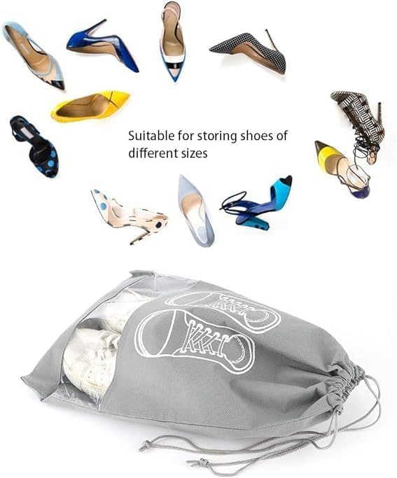 - سعة كبيرة : هناك 5 أكياس تخزين مقاس 44 × 32 سم، كافية لك ولعائلتك. مناسبة للأحذية بمقاس أقل من 33 سم، بما في ذلك الأحذية الرياضية والشباشب وأحذية الرقص وأحذية البولينج وما إلى ذلك. تتسوعب معظم أنواع الأحذية بسهولة، ويمكن استخدامها أيضًا لتخزين الملابس والمناشف وما إلى ذلك.