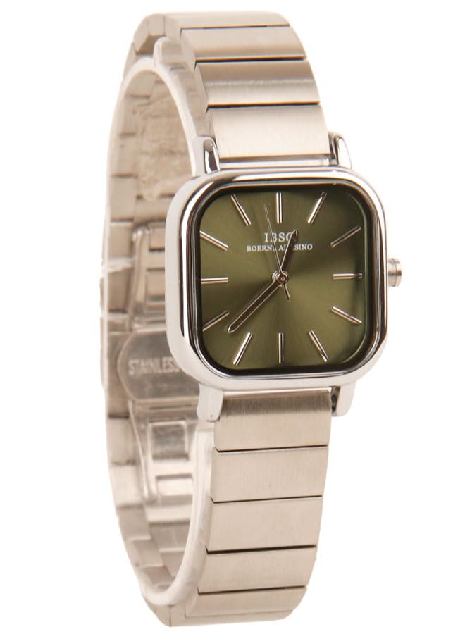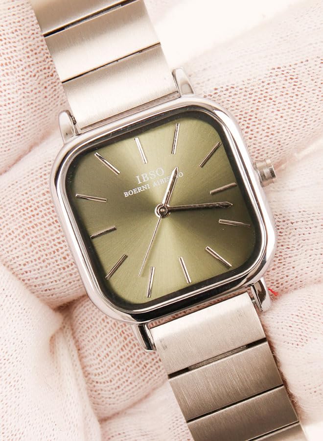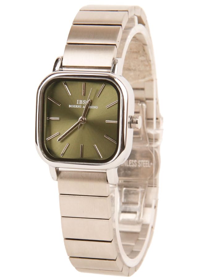 Generic - IBSO Classic Watch for Women - Analog - Kurtz - Silver Stainless Steel Band - Olive Dial - IBM43