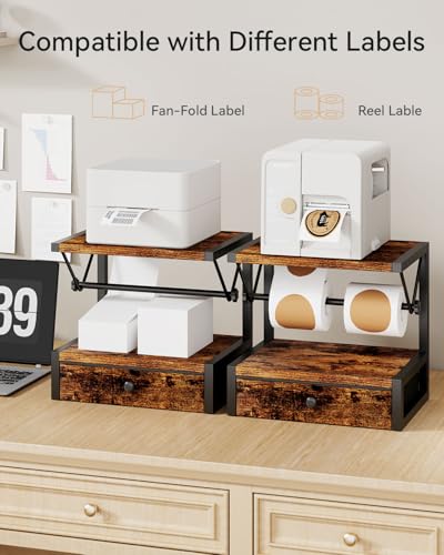 - With drawers: the top stores the printer, and the bottom drawer stores label rolls and folded labels. It not only saves space, but also ensures that your tags are organized neatly and easily accessible.