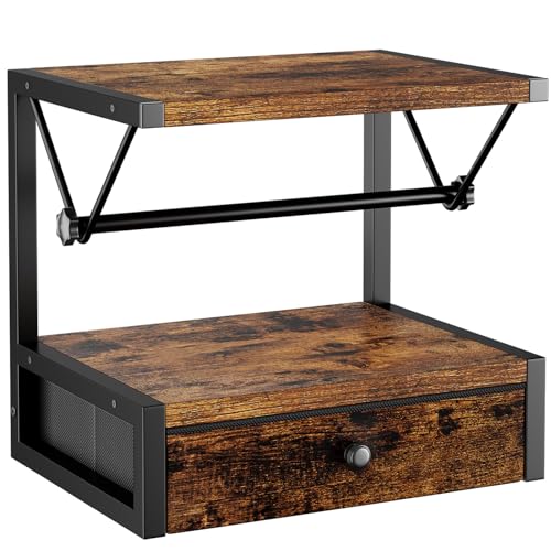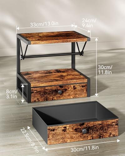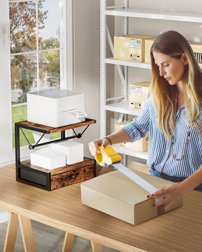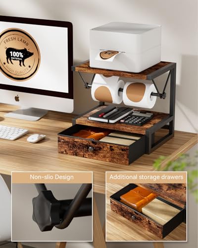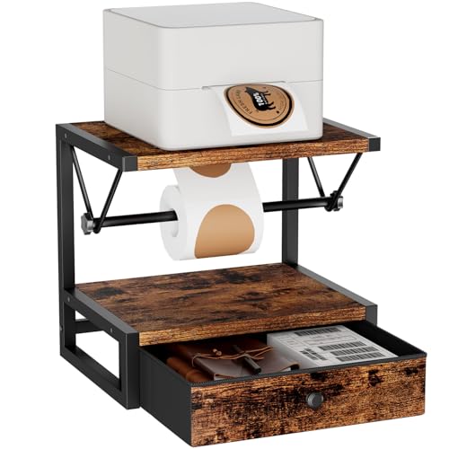 IBUYKE - IBUYKE Label Holder for Rolls and Fan-Fold Labels,Wooden Thermal Shipping Label Stand With Drawer Desktop Printer Holder for Home, Office, Small Business,Brown TPS003H