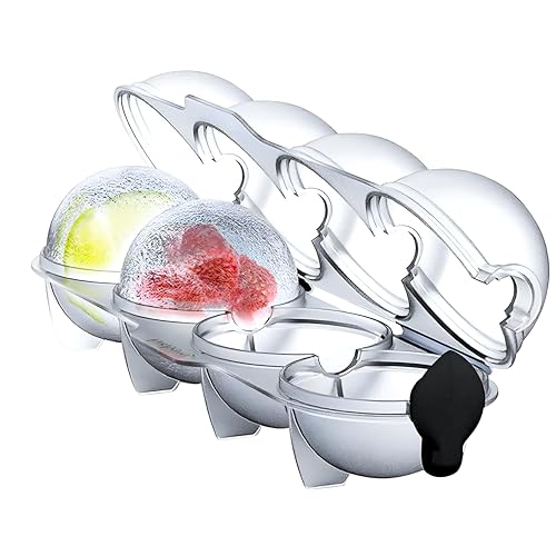 - This ice ball mold features a unique design with four round cavities, crafted from high-quality food-grade materials, including a transparent polypropylene body and a black silicone lid, making it durable, safe, and easy to clean, suitable for creating large ice cubes and beautiful spherical ice balls that melt slowly to keep beverages cooler longer.