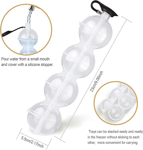 - تصميم احترافي بـ 4 فتحات يتيح لك صنع أربع كرات ثلج كبيرة الحجم ومتناسقة الشكل في نفس الوقت، مما يضيف مظهراً أنيقاً وفاخراً لأي مشروب سواء كان عصير طبيعي أو كوكتيل أو مياه غازية.