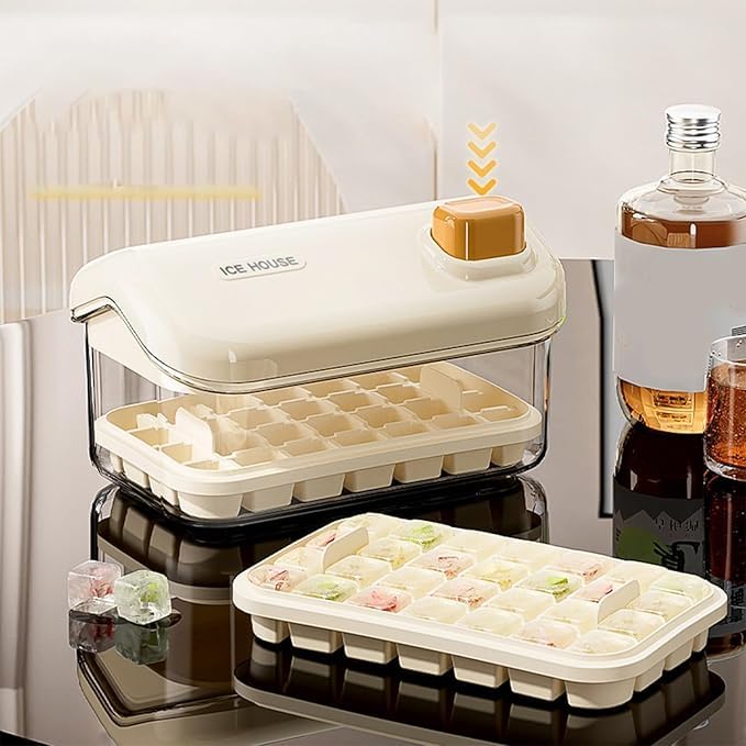 Generic - Ice Box, Ice Compartment, Large Capacity Push-Button Ice Box, Ice Box For Freezer, Ice Maker Box, Easy Access Household Large Capacity 28 Ice Cubes Per Level