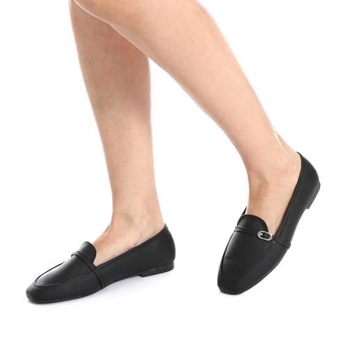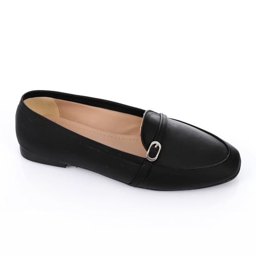 ICE CLUB - ICE CLUB Women's Chic Black Ballets With Decorative Buckle