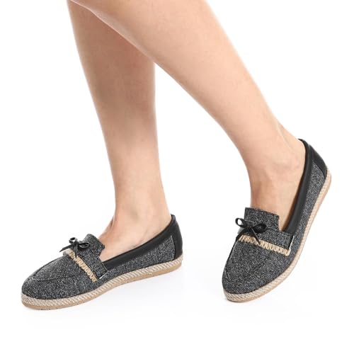 ICE CLUB - ICE CLUB Women's Heather Black Textile Comfy Flat Shoes