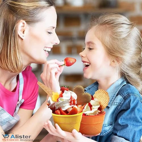 - ✪ Wafer Design: Spoons designed to resemble real ice cream cones, each with a matching plastic bowl. Note: Not suitable for eating.