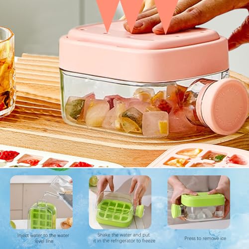 Niaoyun - Ice Cube Bottle, 2 in 1 Zero Touch Press Ice Cube Mold Water Bottle with Lid and Bin, Cool Summer Ice Bottle Cup, Easy Press to Release Vertical Ice Cube Tray with Lid for Freezer (Pink)
