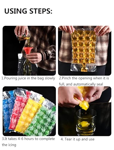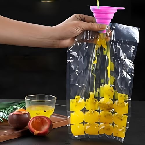 - The included funnel facilitates slow and precise filling, preventing spills, while the folding and sealing instructions ensure an easy, quick process—simply fill, seal by turning the bag upside down, and freeze for perfectly formed ice cubes.