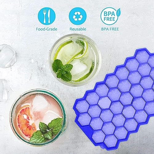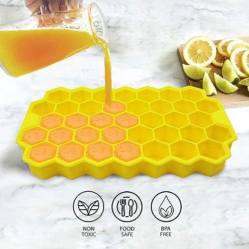 Generic - قالب مكعبات ثلج مرن من السيليكون للفريزر بتصميم خلية نحل مكون من 37 تجويف لصنع كيك الشوكولاتة والمشروبات والكوكتيلات المبردة - عبوة من قطعتين (متعددة الألوان) (1)