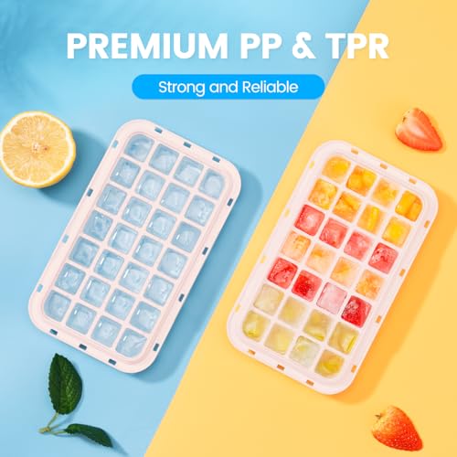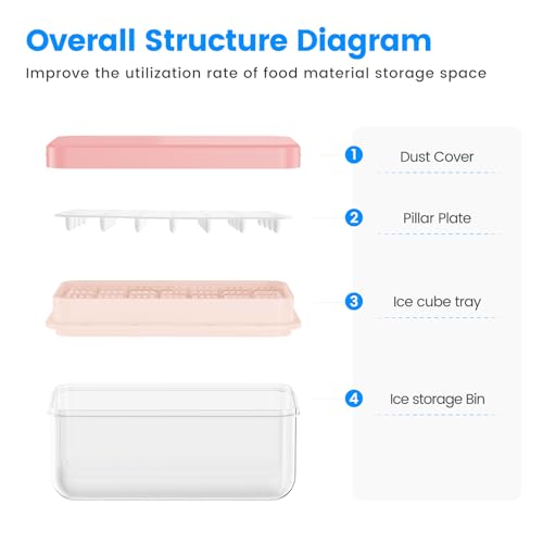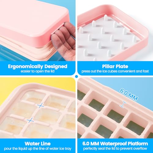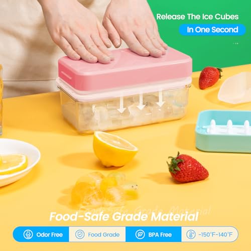 - 🧊[Easy to Release]This ice cube tray uses a push type to quickly release ice cubes. Simply place the ice tray upside down on the ice bin, close the lid and press the middle of the lid with both hands to unmold easily. Do not overfill with water. Twisting the tray, or waiting a few minutes at room temperature is more conducive to releasing the ice.
