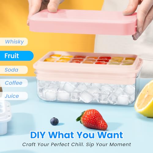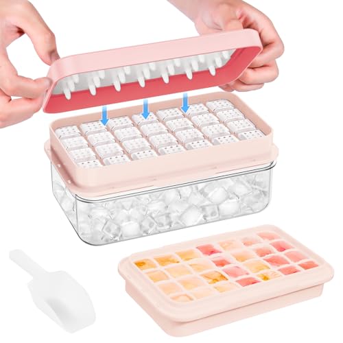 PHINOX - Ice Cube Tray with Lid and Bin, 32 pcs Ice Cubes Molds, Ice Trays for Freezer, Ice Cube Tray Mold, With 1 tray, Ice Freezer Container, Spill-Resistant Removable Lid & Ice Scoop, for Whiskey,Cocktail