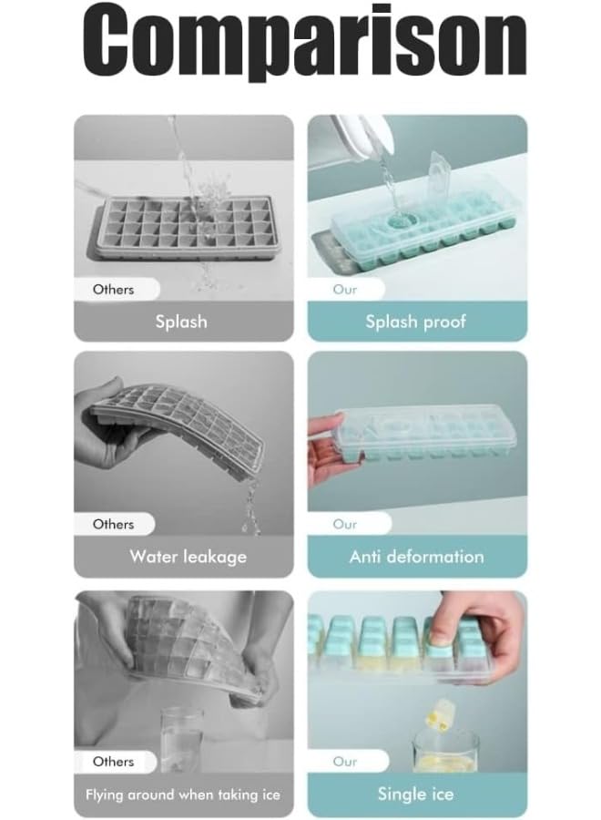- Upgraded Multi-Function Lid: The new flip-top airtight lid design keeps water from splashing and keeps ice cubes from absorbing freezer odors. The small ice cube tray is heightened and reinforced, the lids is makes stacking a breeze and not stick and keeps the cubes clean. Neatly stack them, saves space!