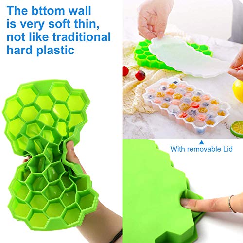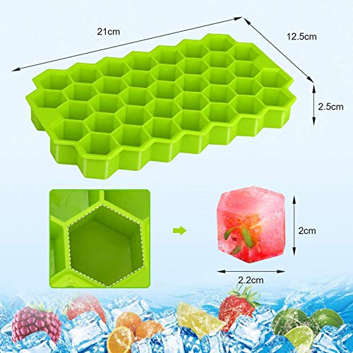 - 【Ice Tray Specification】: The ice tray is honeycomb-shaped and contains 3 ice trays. Each ice tray has 37 ice trays of appropriate size. Our ice mole set can create 111 ice cubes. It comes with an auxiliary cover to prevent odor, dust and adhesion. And can be easily and neatly stacked in the refrigerator to save space. Clean and tidy!