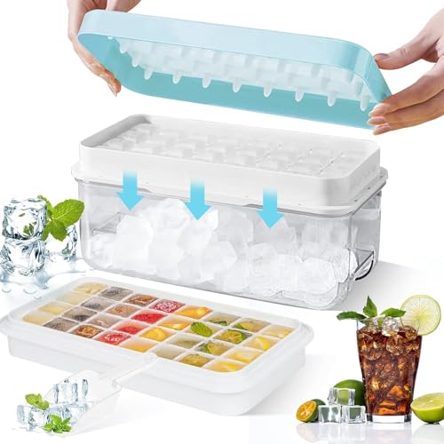 Generic - Ice Cube Trays with Scoop, Easy Release Silicone & Flexible 42-Ice Cube Trays with Spill-Resistant Removable Lid for Cocktail, Freezer, Stackable Ice Trays with Storage Box,BPA Free - multicolour