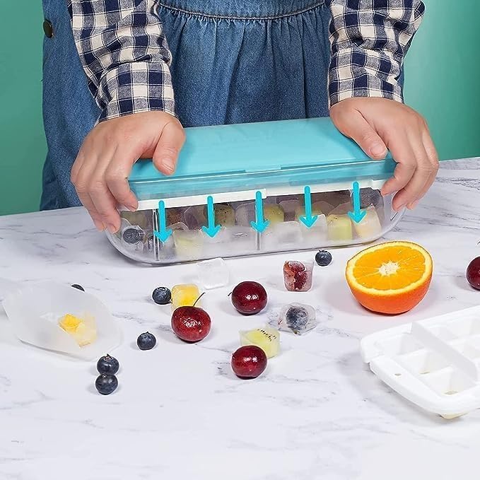 - 🍓【Easy to Remove Ice】- Silicone ice cube trays with lid and press plate design, which makes it easy to release ice cubes and the soft silicone material will not break after freezing for a long time. Each flat cube compartment is separate from others , you can easily push the lid with press plate from the cube bottom. No need for awkward bending or twisting, removing the ice cube isn't a tough job anymore!