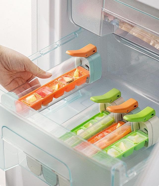 - Ice Cube Trays with Bin: The package includes ice cube trays, an ice cube bin, and an ice scoop. The ice container holds the cubes, and the lid prevents them from absorbing refrigerator odors, ensuring you always have fresh, clean ice cubes. ❄️🍯🧊