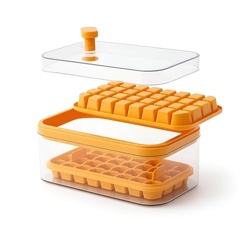 Generic - Ice Making Kit - 64 Cube Freezer Mold with Cover and Basket, Bright Yellow, Pack of Two for Home and Party Cooling Needs