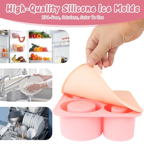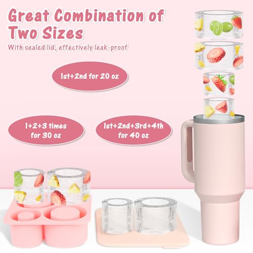 QHSXMQ - قالب ثلج لكوب ستانلي، قوالب ثلج من السيليكون، صينية مكعبات الثلج مع غطاء لكوب ستانلي 560-1120 مل، صواني ثلج كبيرة للفريزر، 4 أقسام قالب مكعبات الثلج للكوكتيلات/الويسكي/المشروبات/القهوة