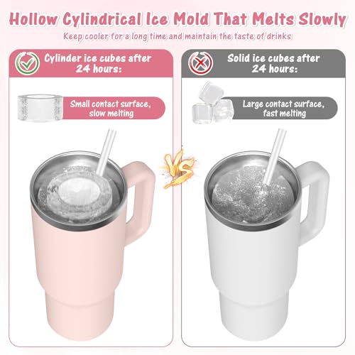 - [قوالب مكعبات ثلج مثالية]: سيكون لديك قالب أكواب ثلج كبير وسميك مناسب لأكواب ستانلي 560-1120 مل يمكنك بسهولة الحصول على 4 مكعبات ثلج أسطوانية مجوفة الشكل بشكل مثالي لتجربة شرب مرضية