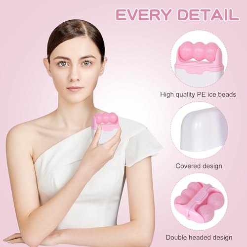 Luxvara - بكرة ثلج للوجه 2 في 1 لتدليك الوجه البارد والجسم، ادوات العناية بالبشرة، هدية للنساء (بينك)