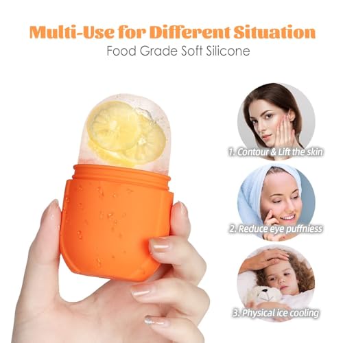 Generic - عصا متدحرجة للوجه والعينين، لون برتقالي، مصنوعة من السيليكون، مع خاصية التبريد لتضييق المسام وتخفيف الانتفاخ، تستخدم تقنية الرولينج للتدليك، قابلة لإعادة الاستخدام