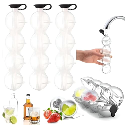 Generic - Ice Sphere Tray - Quad Mold with Four Rounded Cavities to Effortlessly Shape Ice Balls for Drinks, Detox Water, or Fresh Juice Ice Cubes at Home or Parties (3)