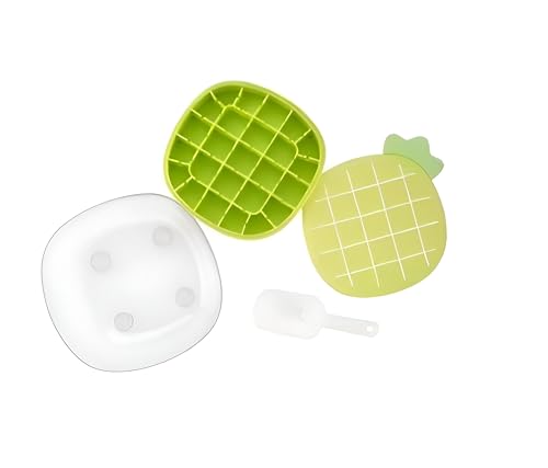 Generic - صينية ثلج - قالب سيليكون مرن على شكل اناناس مع 25 فتحة بالاضافة الى غطاء، وعاء تفريغ ومغرفة تقديم واقدام تثبيت للاستخدام اليومي الآمن في المطبخ