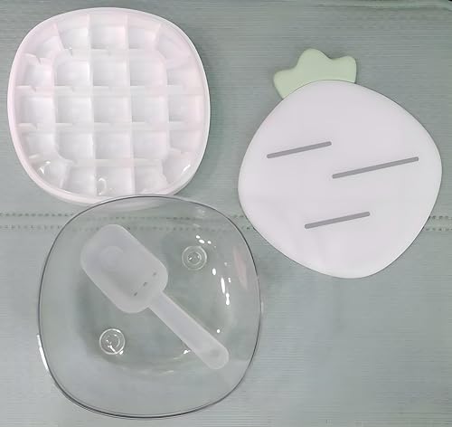 - تم تصميم هذه المجموعة مع وضع راحة المستخدم وتنظيم الفريزر في الاعتبار، وتأتي هذه المجموعة مجهزة بأربع قواعد سيليكون متينة تثبت الصينية بأمان أثناء التعبئة والنقل، مما يمنع الانسكابات العرضية قبل التجميد. الغطاء المحكم المتضمن يغلق بإحكام فوق القالب لحماية الماء من امتصاص روائح الفريزر والنكهات غير المرغوب فيها، مما يضمن مذاق كل مكعب نقي ونظيف. علاوة على ذلك، يسمح صندوق التفريغ المتخصص للمستخدمين بإخراج جميع المكعبات الخمسة والعشرين في وقت واحد